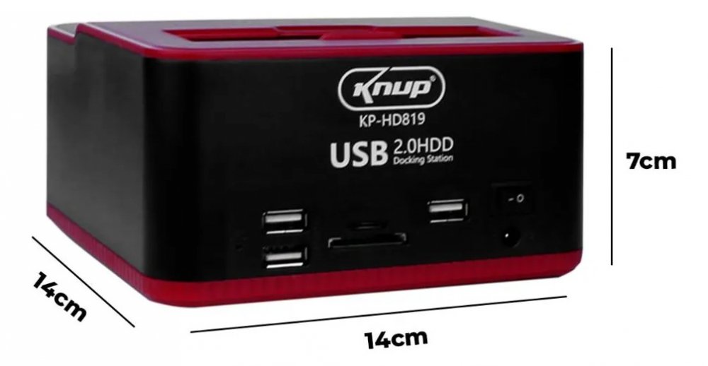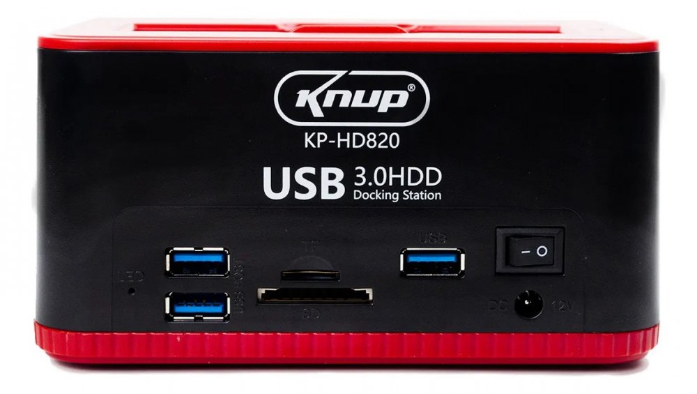 KP-HD820 Knup DockStation para 2 HD/SSD SATA 2.5/3.5 USB 3.0 possui leitor de cartão MicroSD e SD e 3x USB 3.0