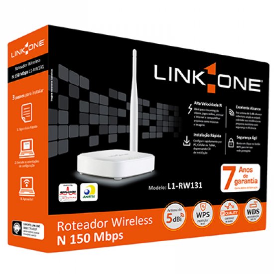L1-RW131 Roteador Wireless N Link One 150Mbps 2.4 GHz Antena fixa de 5 dBi