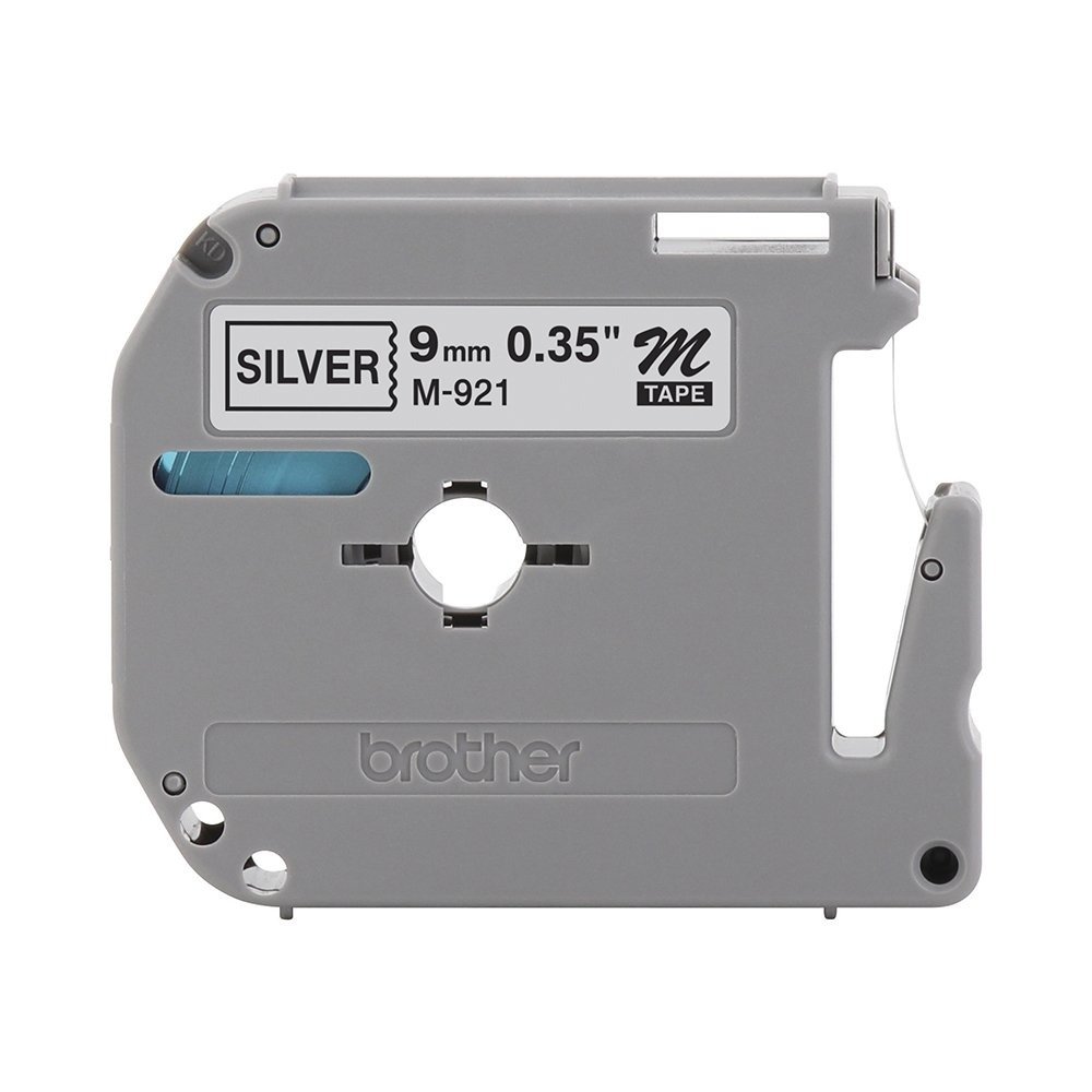 M-921 Fita para Rotulador Brother Prata, Escrita Preto 9mm x 8m, Compatível PT-55, PT-65, PT-70, PT-80