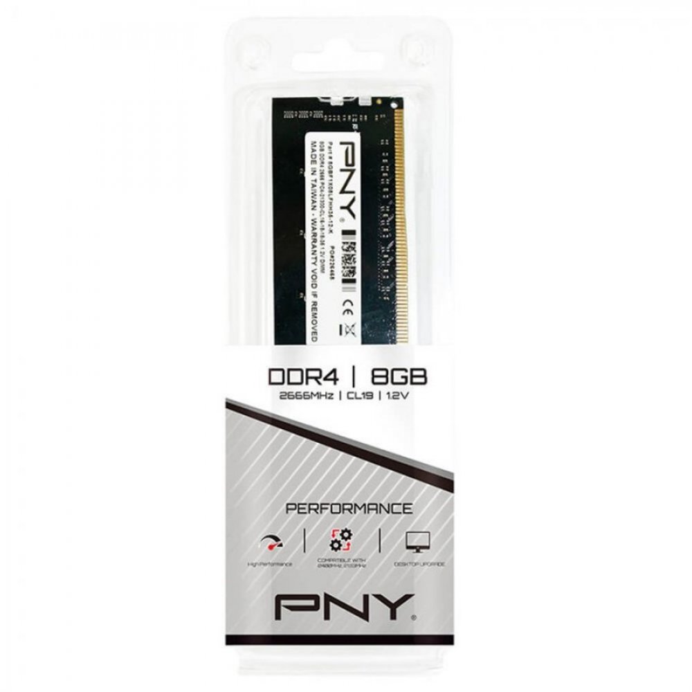 PNY Memória 8GB DDR4 2666MHz CL19 288 PinosPNY Memória 8GB DDR4 2666MHz CL19 288 PinosPNY Memória 8GB DDR4 2666MHz CL19 288 Pinos