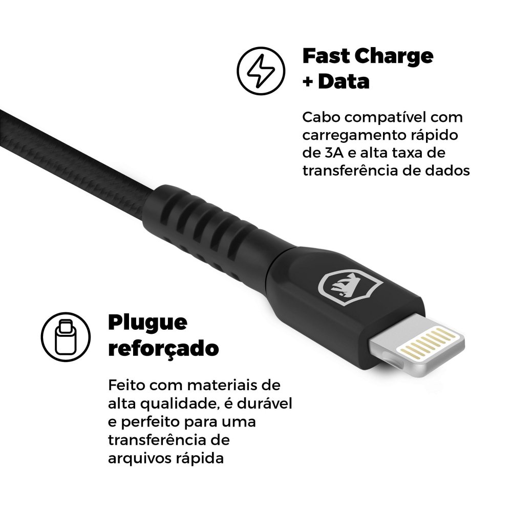 MGMVA32CP Gorila Shield Cabo Lightning Dual Shock 2 Metros Preto MFI Homologado