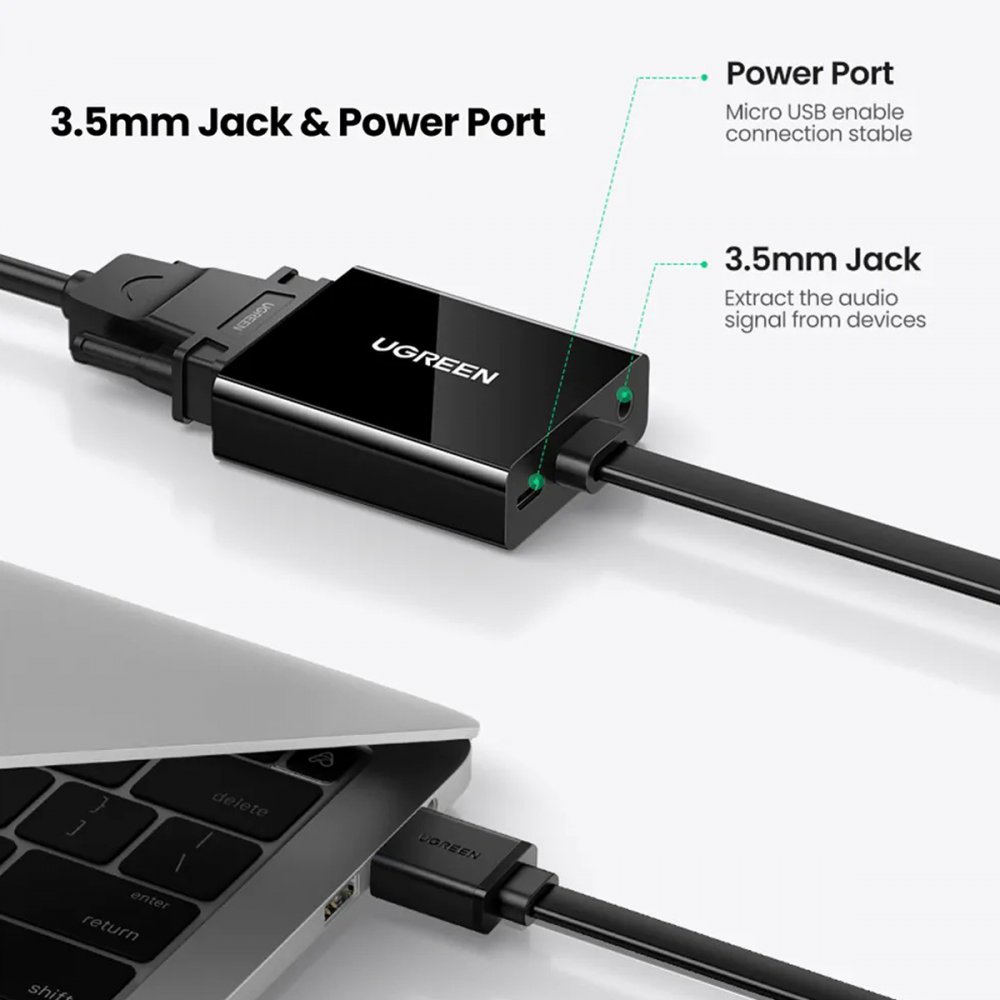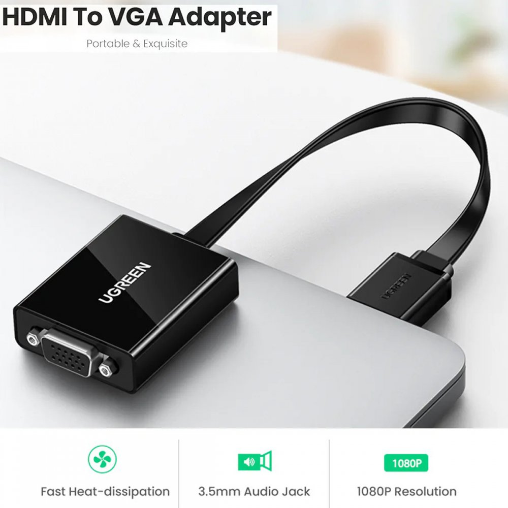 MM103 Ugreen adaptador HDMI para VGA e Audio 3.5mm 1080P 60Hz