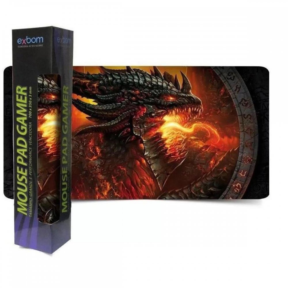 MP-7035C-01 Exbom mousepad speed gamer extra grande 70x35cm Dragão de Fogo 3mm antiderrapante bordas costuradas