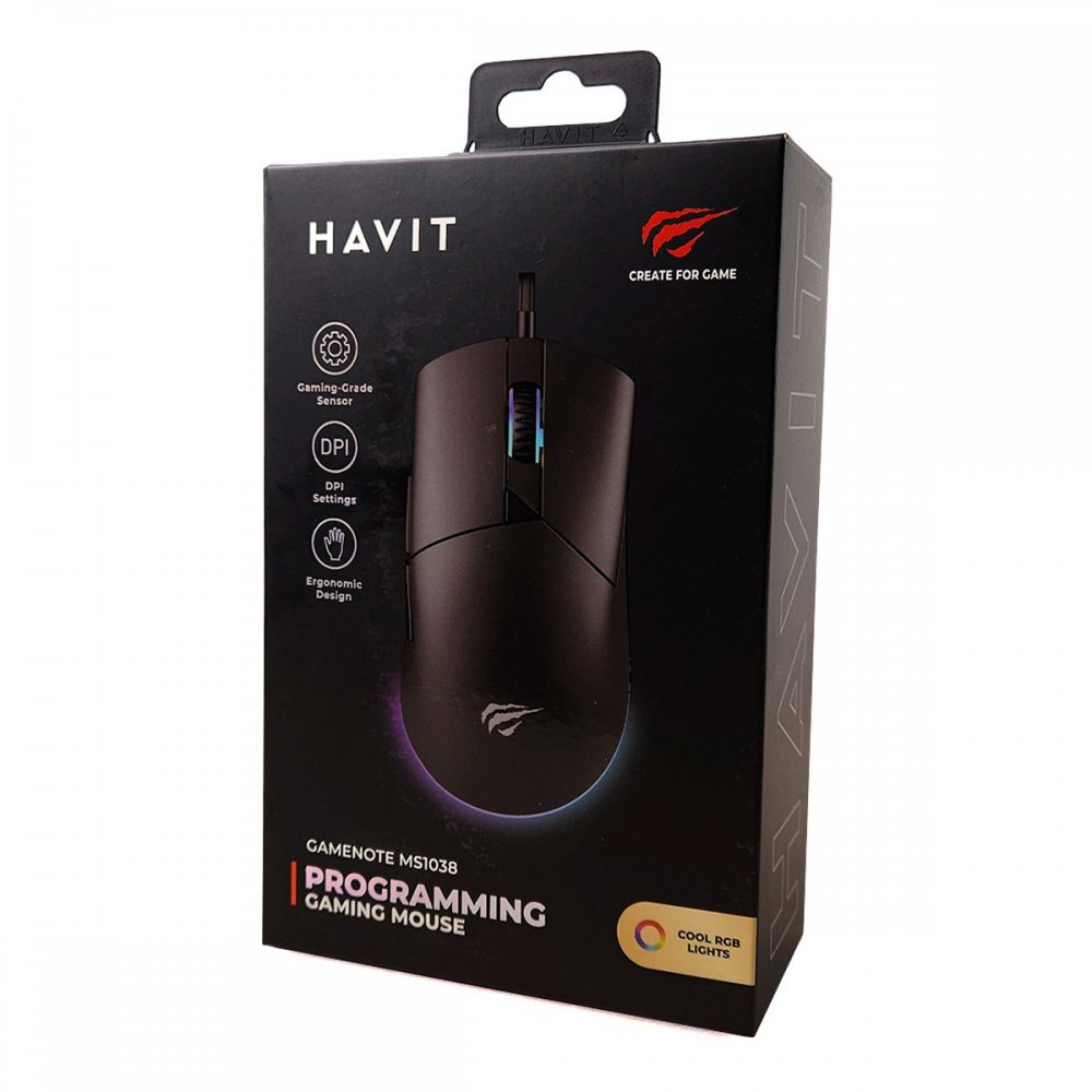 MS1038 Havit mouse gamer 7 botões RGB 8000DPI USB preto
