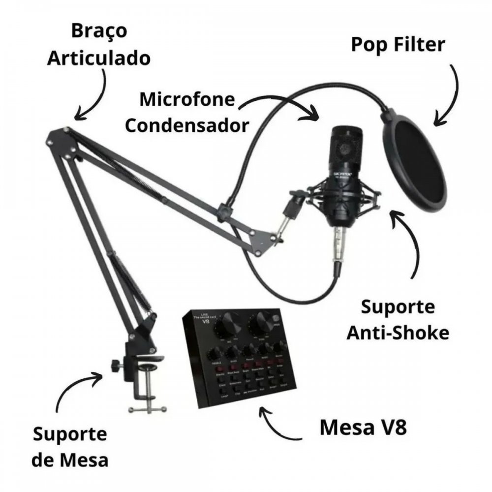 MT-3502 Tomate microfone cardioide profissional com braço articulado com mixer de audio