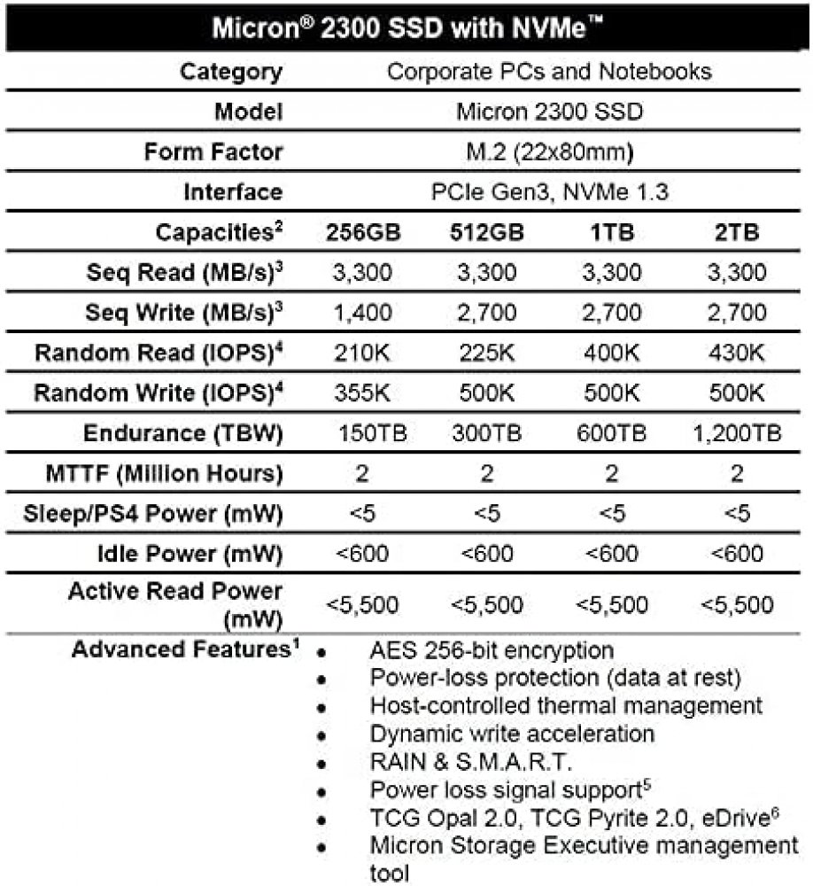 MTFDHBA512TDV Micron SSD 512GB M.2 NVMe 2280 PCIe 3.0 x4