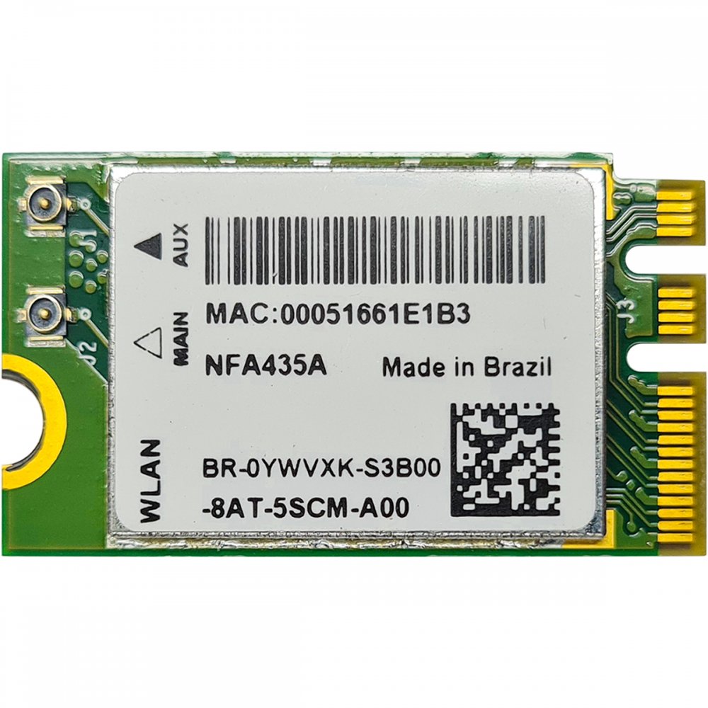 Tags de NFA435A: Placa Wi-Fi Dell, Placa Wireless Dell, 0YWVXK, NFA435A, QCNFA435, Placa Wi-Fi G3, Placa M.2 NGFF, Wi-Fi Dual Band, Qualcomm QCA9377, Reposição Placa Wi-Fi, Dell G3 3590, G3 3590, Dell G3 3579, G3 3579, Lenovo Ideapad 320, Ideapad 320, Lenovo Ideapad 330 15IKBR, Ideapad 330 15IKBR, Placa 433 Mbps, Wi-Fi 802.11ac, Placa sem Bluetooth, Peça Dell, Placa Qualcomm Atheros, DELL Brasil