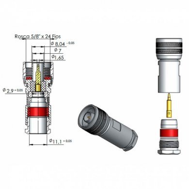 N-J1/2S-SCF CONECTOR N MACHO 50 ohms Para Cabos RGC-213 RG8 LMR400 RG165 RG213 RG393 / Freqüência de Trabalho: 0 a 3.0GHz / Fixação do C