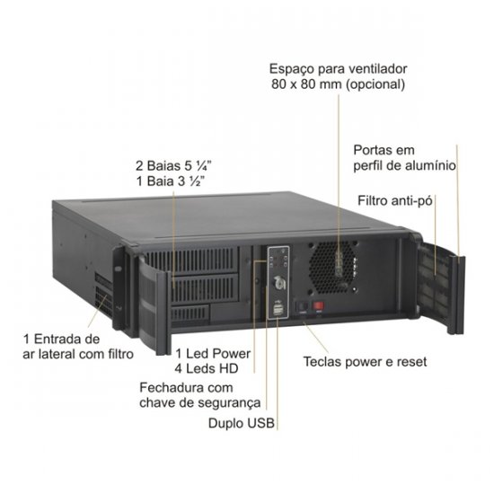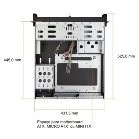 NK030330-A400 Gabinete Nilko NK330 ATX Rack 19 Pol. 3U Cooler de 8x8cm 2 baias 5.25 externas/ 1 baia 3.5 externa/ 4 baias 3.5 internas