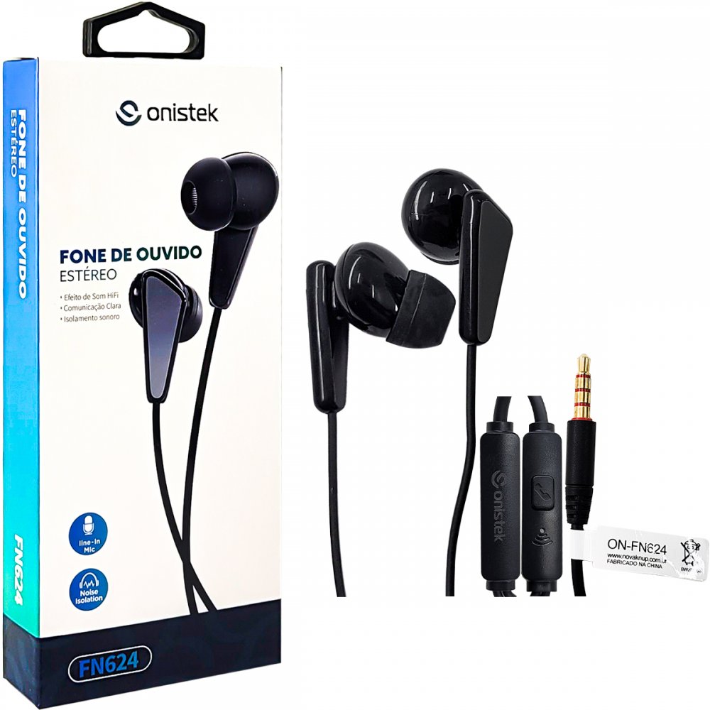 ON-FN624-PT/CZ Onistek fone de ouvido com fio e microfone P2