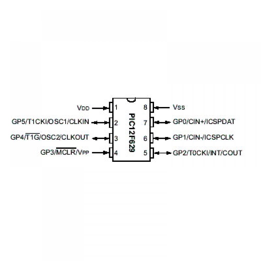 Tags de PIC12F629-I/P: PIC12F629-I/P, PIC12F629-I, PIC12F629, PIC12F629IP, PIC12F629-I/MF, 12F629, Pic 12f629-i/sn, PIC12F675-I/SN, PIC12F675, PIC12F675-ISN, PIC12F675-I, PIC12F675, PIC12F675 I, 12F675, PIC12F615-I/MD, PIC12F675-I/P, PIC Microchip 12F, PIC 12, 8-bit Microcontrollers - MCU, pic12f, pic 12f, Microchip