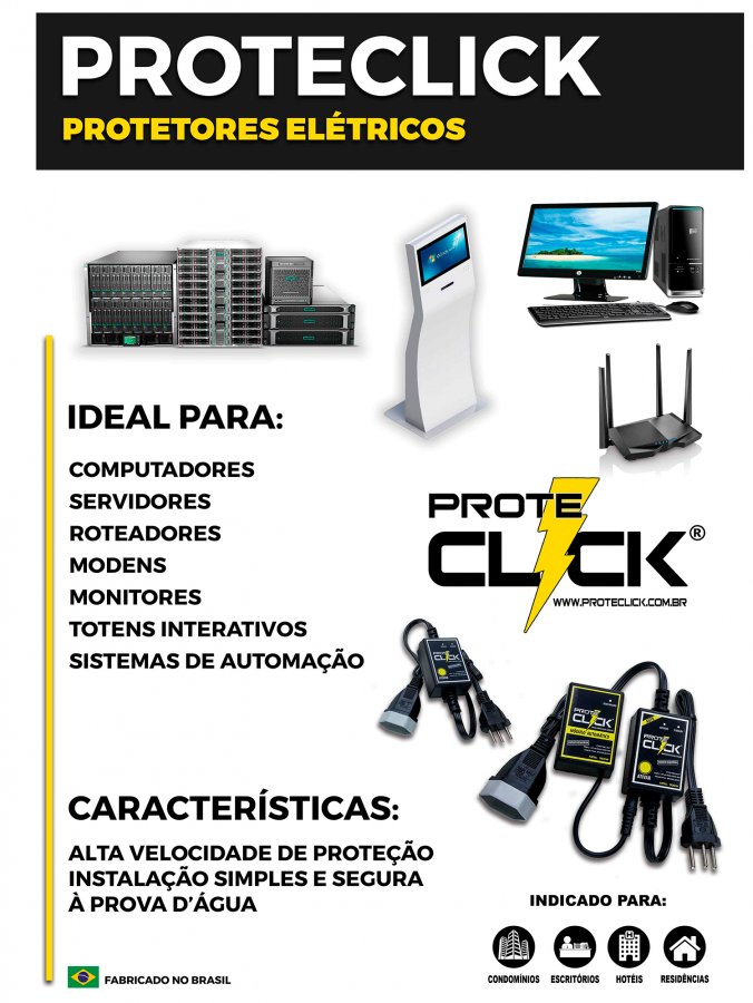 PTC-M220V ProteClick Protetor Eletrico 220V 2200W Rearme manual - Protege contra raios, oscilações de tensão, surtos na rede e quedas de energia