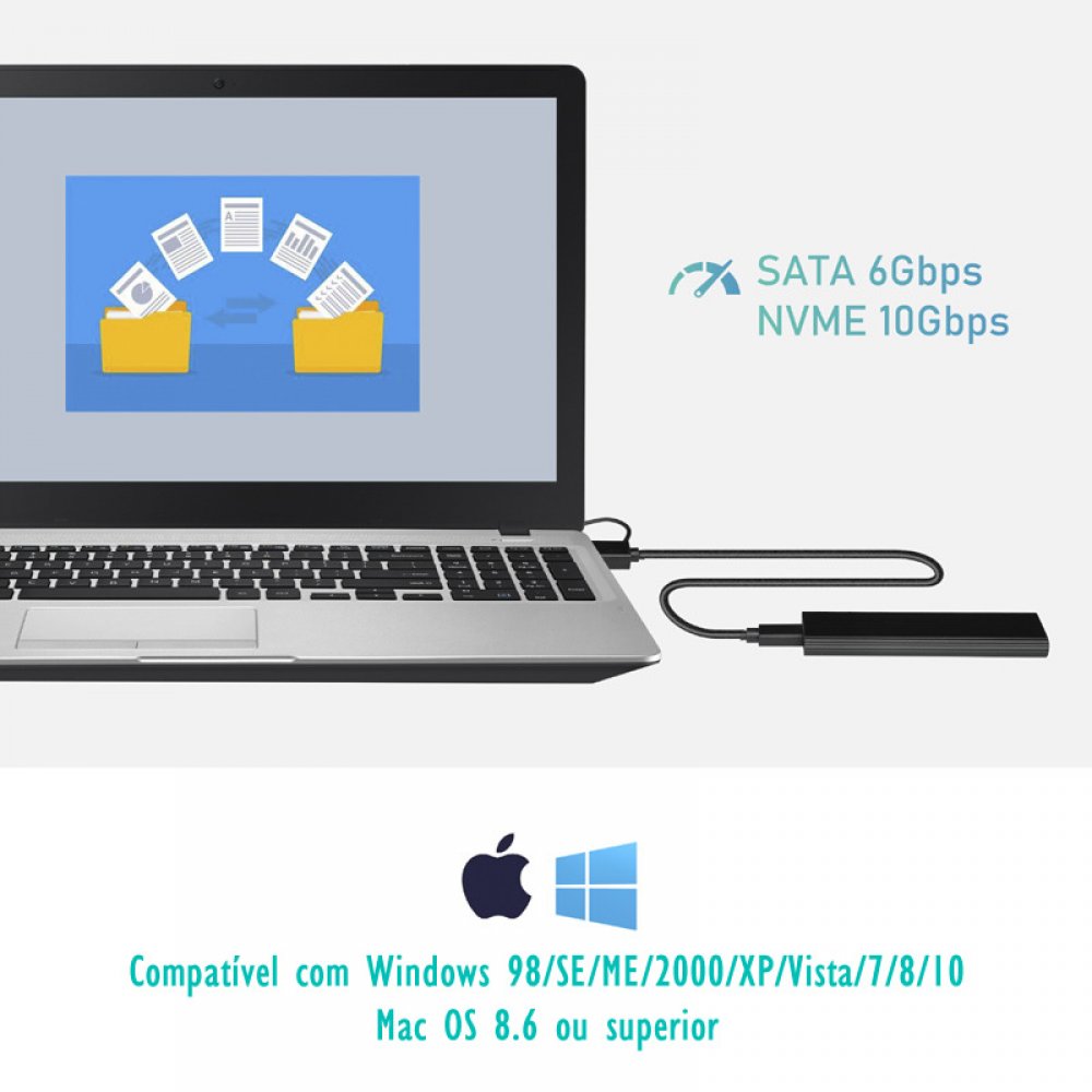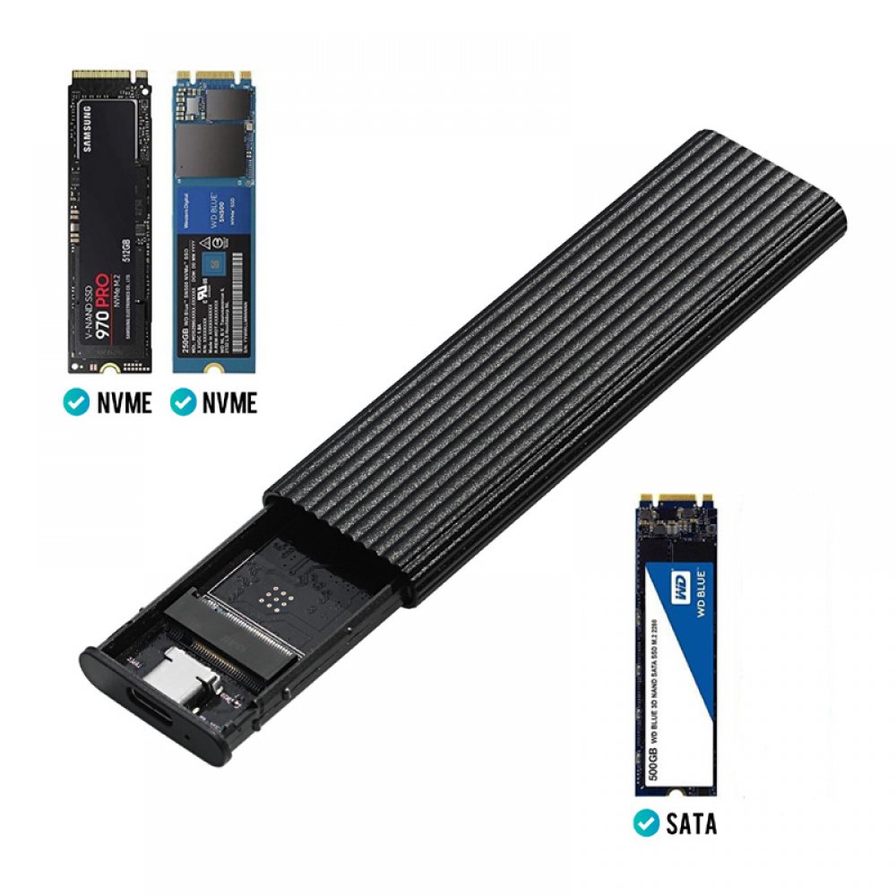 RTL9210B-OTG Case para SSD M.2 NVME e SATA USB 3.1 e USB tipo C Suporta M.2 M e M+B Key 2230/2242/2260/2280