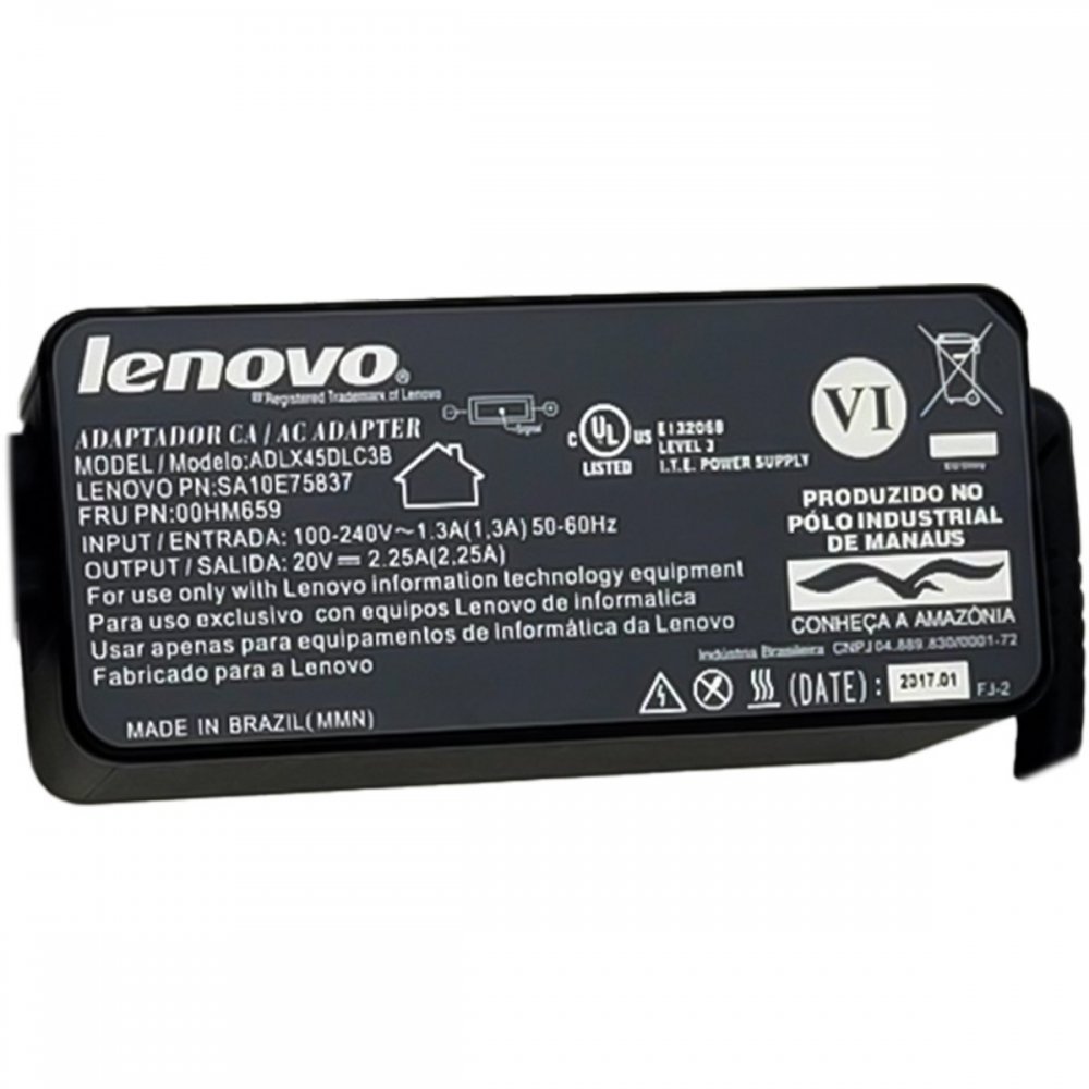 SA10E75837-SN Fonte carregador original Lenovo 45W 20V 2.25A Plug retangular, bivolt automático 100-240V