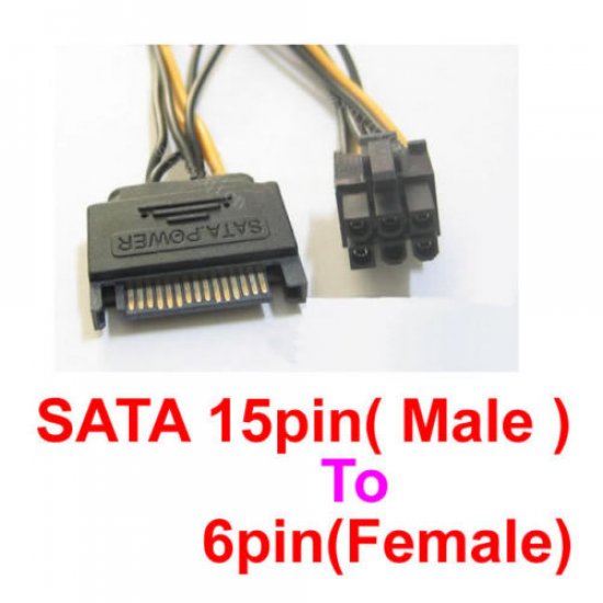 SATA15M-6PIN-F Cabo Energia Aux Placa de Vídeo PCI-E Conector SATA 15 Pinos Macho para 6 Pinos Molex Femea - Comprimento aproximado 20cm