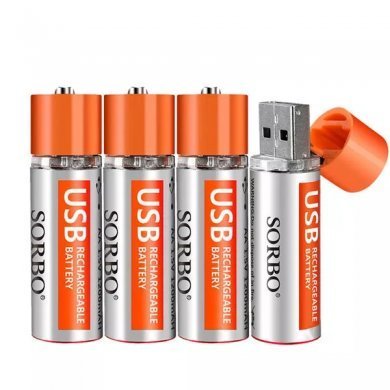 SB-2126 Sorbo Pilha AA Recarregavel USB 1.5V 1200mAh Kit com 4 Pilhas