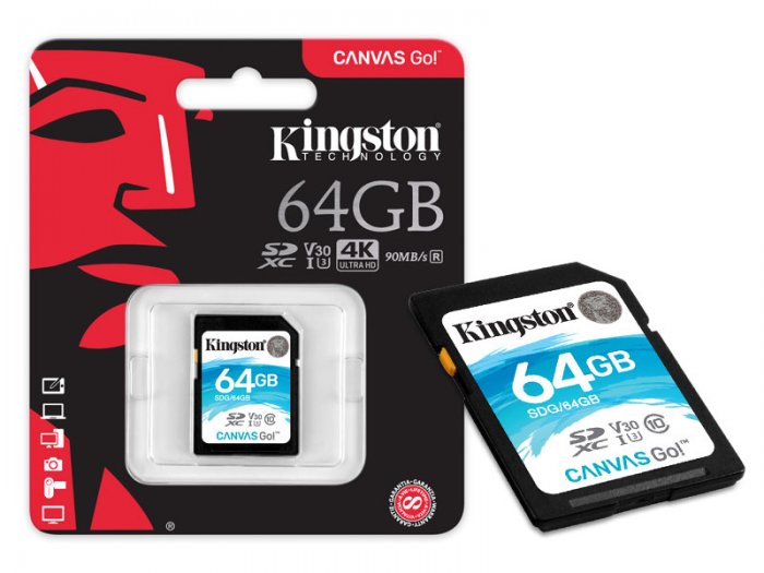 SDG/64GB Kingston Cartão de Memoria 64GB SDXC 4K 90R/45W UHS-I U3 V30 CANVAS Go