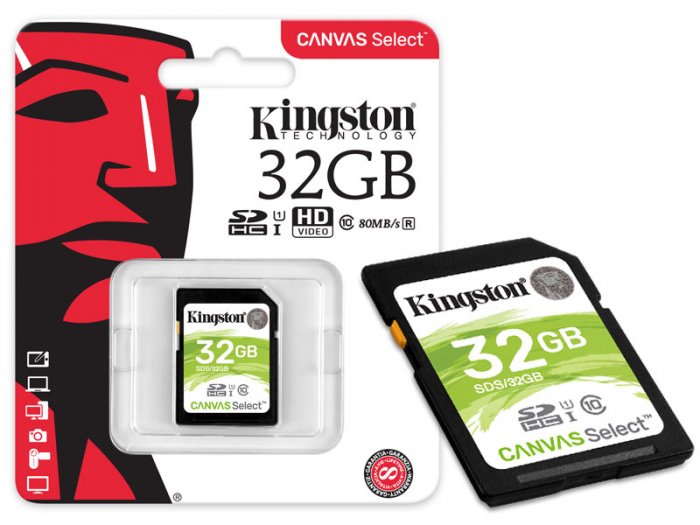 SDS/32GB Kingston Cartão de Memoria 32GB SDHC HD Video 80R/10W UHS-I U1 V30 CANVAS Select