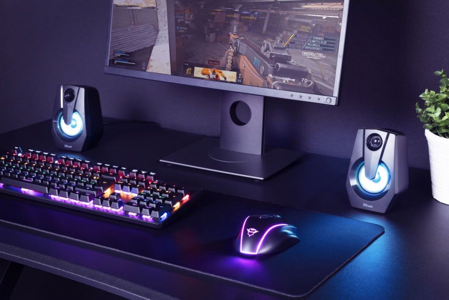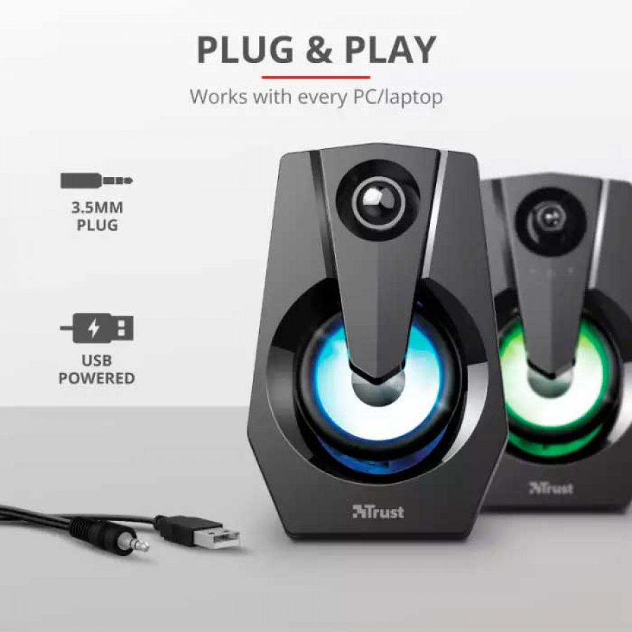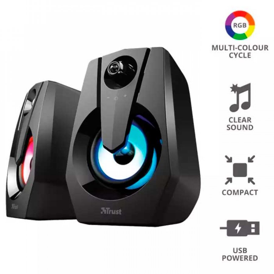 T24071 Trust caixa de som gamer ZIVA com led RGB conexão P2 3.5mm e USB para alimentação