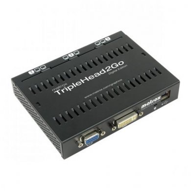 O Módulo eXpansion Matrox TripleHead2Go Digital Edition é um dispositivo externo que permite o uso de três monitores, cada um com resolução de até 1280 x 1024, de uma única porta VGA ou DVI. Isso permite usar três monitores digitais ou analógicos em um laptop ou em um desktop que possua apenas uma conexão com monitor.