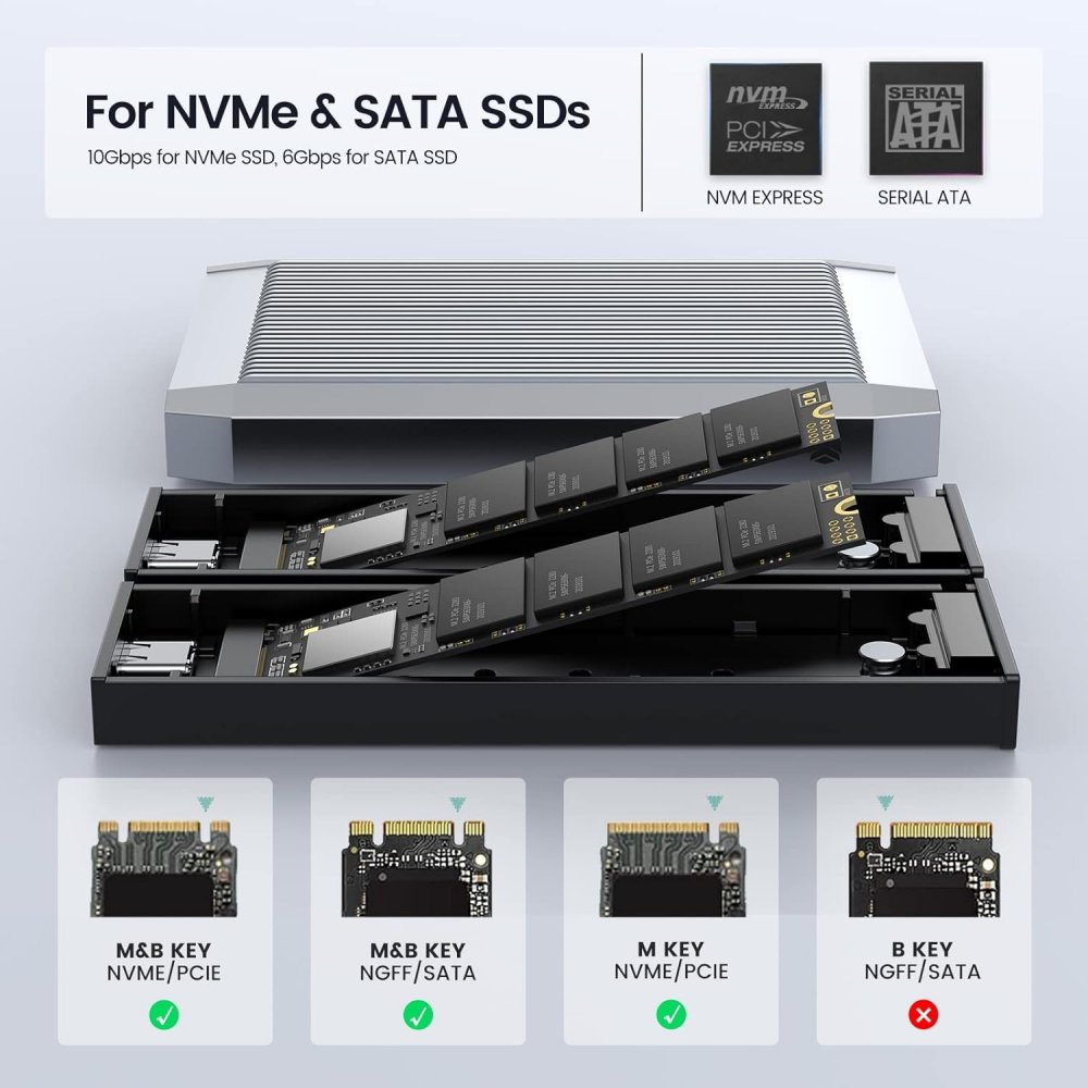 Lado A compatível com SSD SATA e Lado B compatível com SSD NVMe