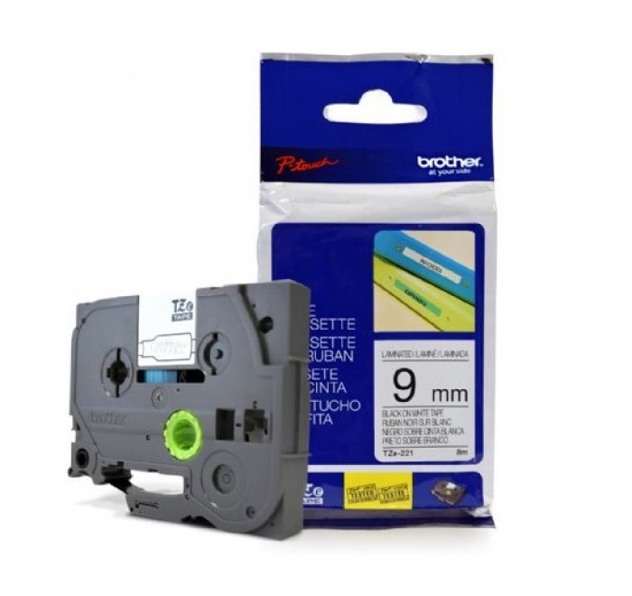 TZE-221 Fita original Brother para Rotulador 9MM 8 metros Preto sobre Branco