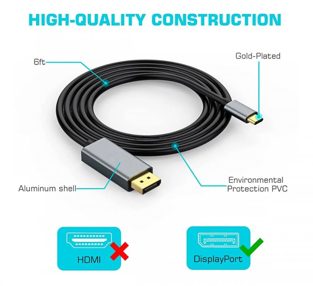 USBC-DISPLAYPORT Cabo USB-C 3.1 Para Displayport 4k 60hz 1.8M
