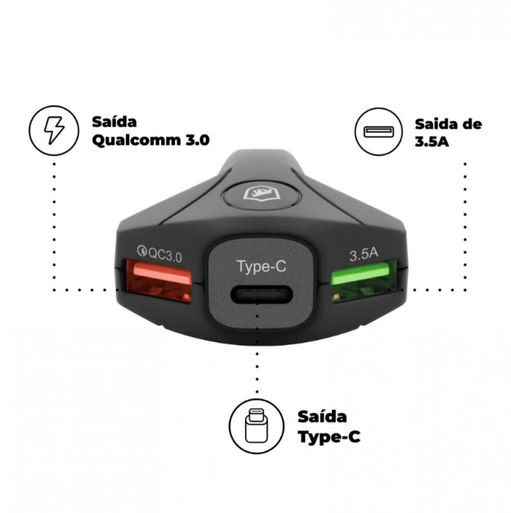 W2GKZ7HJ5 Gorila Shield Carregador Triplo Turbo Tank USB-C Qualcomm 3.30