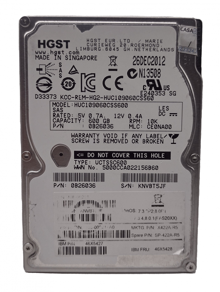 Outros PNs para este item: 0B26036, HUC109060CSS600, X422 HCOBE600A10, X422 TAL13600A10, HDEBC01NAA51, AL13SEB600, X90-422A-R6, 108-00221+A0, X422A-R5, SP-422A-R5, 46X5427, 46X5428