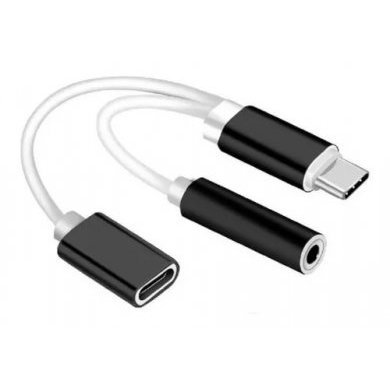 XC-ADP-16 Cabo Adaptador USB Tipo-C Femea + P2 3.5mm Para Uso Simultâneo de Microfone, Fone de Ouvido e Carregador de Celular
