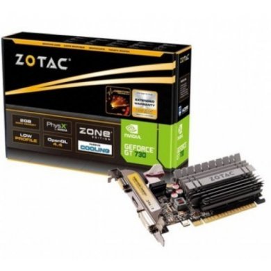 ZT-71113-20L Placa de Vídeo Zotac GT730 2GB NVIDIA DDR3, 64 Bits, Core Clock 902MHz, 384 Cuda Cores, DVI, HDMI, VGA