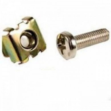 Parafuso M5 com porca gaiola para fixação em planos de racks de telecom
