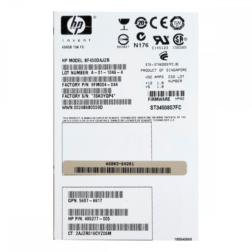 AG803B HD HP StorageWorks EVA M6412A 450GB 15K Fibre Channel (Part Numbers: 454412-001, 495277-005, AG803-64201)