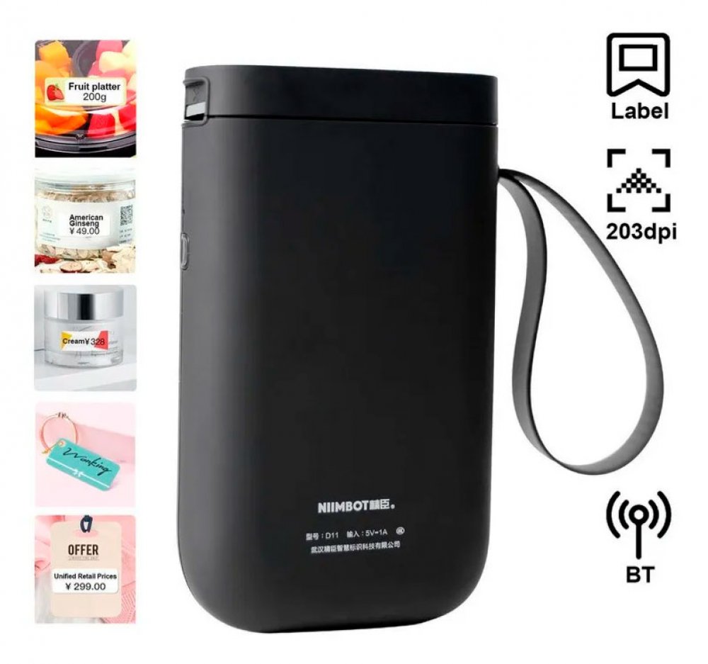 D11-1R Rotuladora bluetooth Niimbot D11 Preto acompanha 1 refil preto sob etiqueta branca