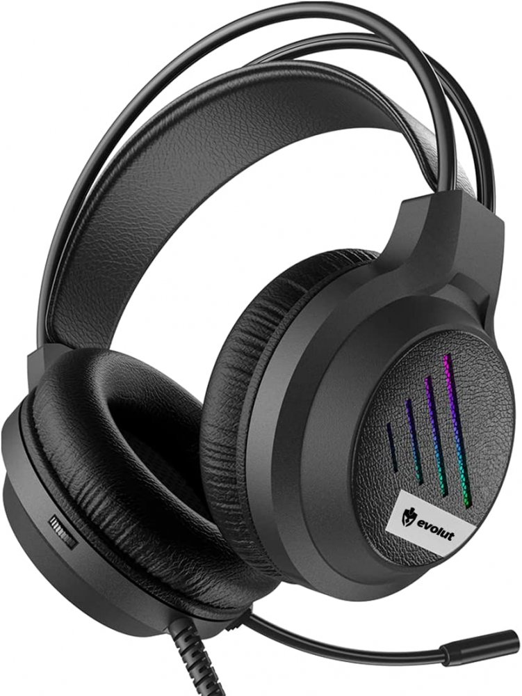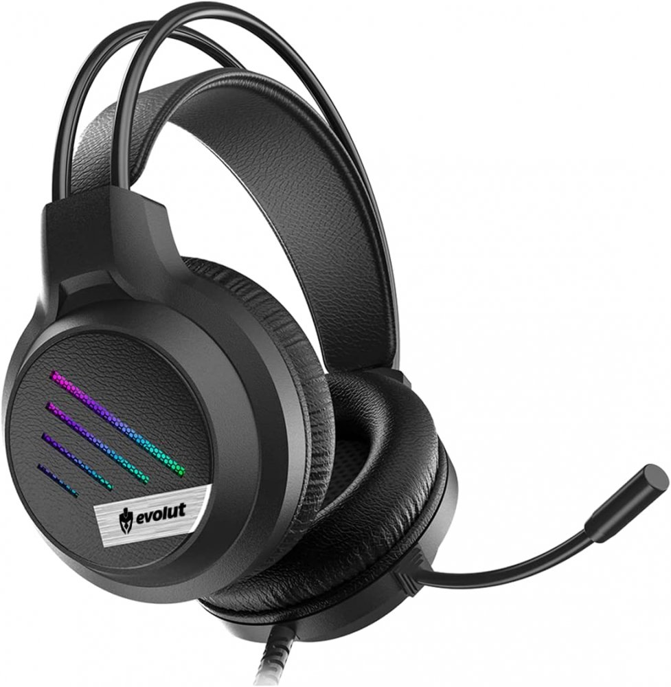 EG306 Evolut Headset Gamer LESH EG-306 LED RGB Rainbow driver 50mm com microfone e conexão P2 ou P3, cabo 2 metros