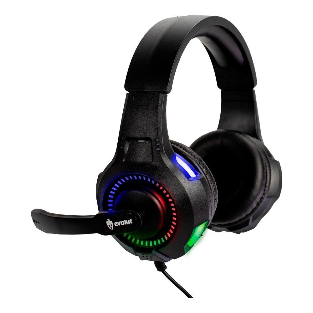 EG307 Evolut Headset Gamer Rival LED Rainbow USB e P3 com microfone drivers 40mm cabo de 2 metros