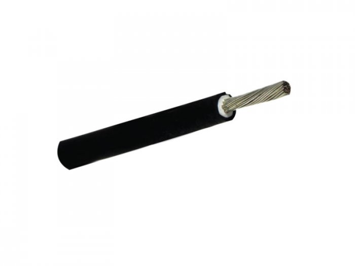 - Cabo unipolar de potência flexível, com condutor de cobre estanhado, isolação em HEPR e cobertura em PVC com resistência a UVB, para tensões até 1 kV (1500 V DC).