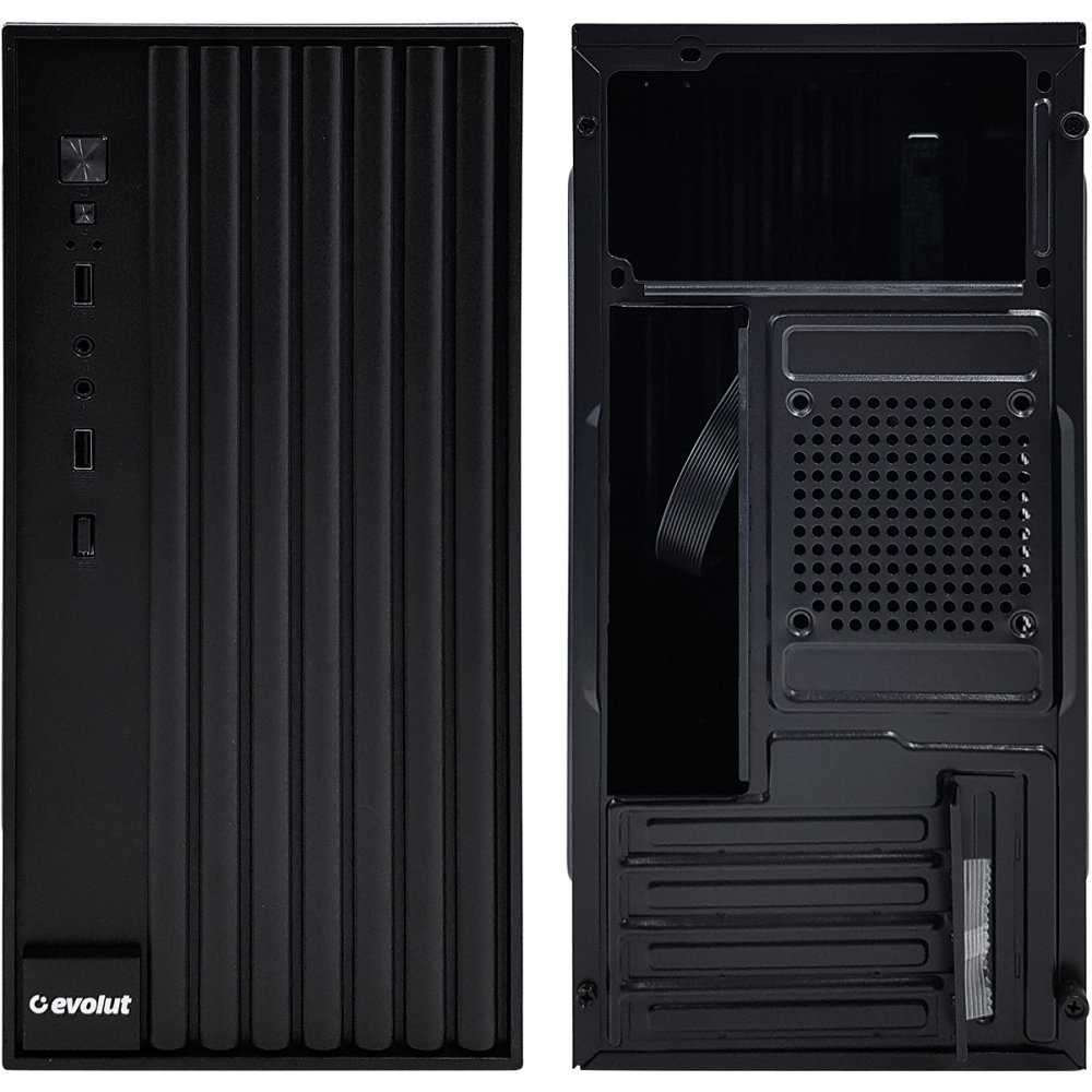 EO-301 Evolut Gabinte EO-301 Office Micro-ATX Preto Frontal: 1x fone, 1x microfone, 2x USB 1.1