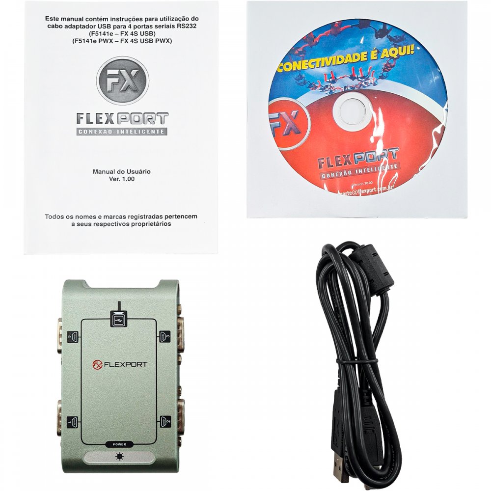 F5141E Flexport conversor USB para 4 portas seriais RS232 DB9M
