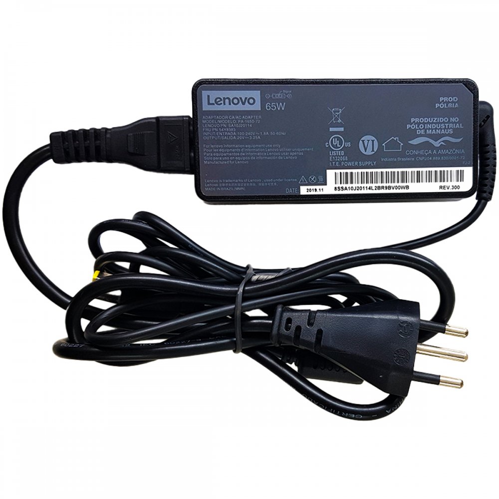 PA-1650-72 Fonte original Lenovo 65W 20V 3.25A Plug retangular Bivolt automatico