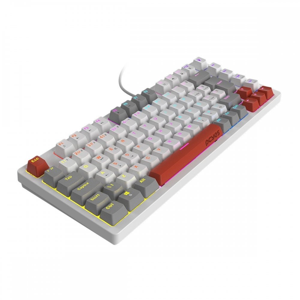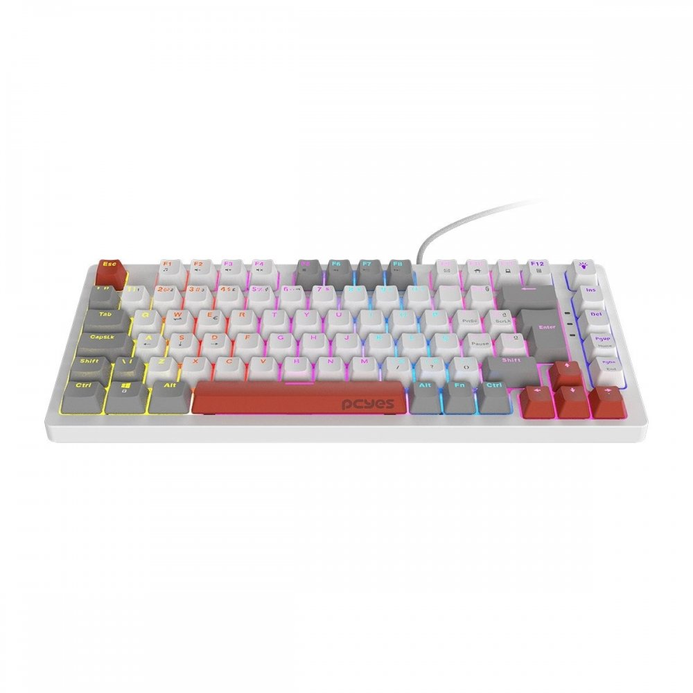 PTKRWG75BL PCYes teclado mecanico Kirin 75% switch blue White ghost - Led rainbow