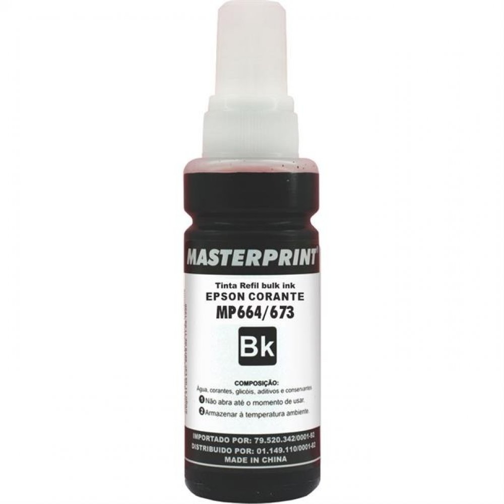 R-EP100BK Masterprint refil de tinta Epson 644 100ml Preto Compatível com Impressora Stylus L200 e L210