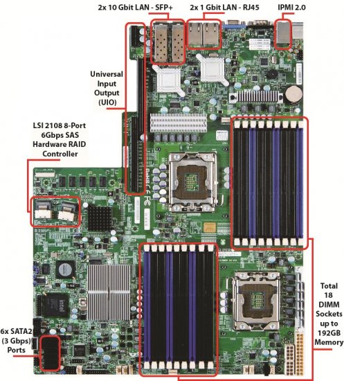 5600 5500 series LGA1366 - QPI 6.4 GTs, Controladora LSI 2108 SAS, IPMI, Dual-Port 10 Gigabit SFP+,